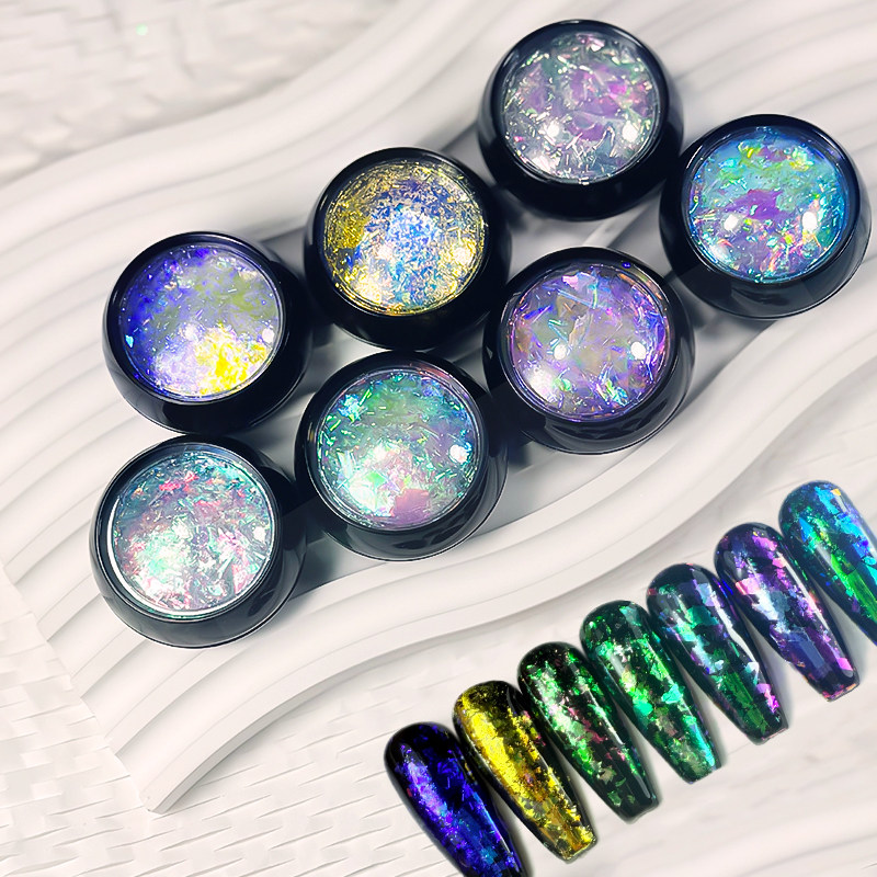 NAILART TRANSPARENT CHAMELEON AURORA MERMAID MIRROR MACARON GLASS FLAKES